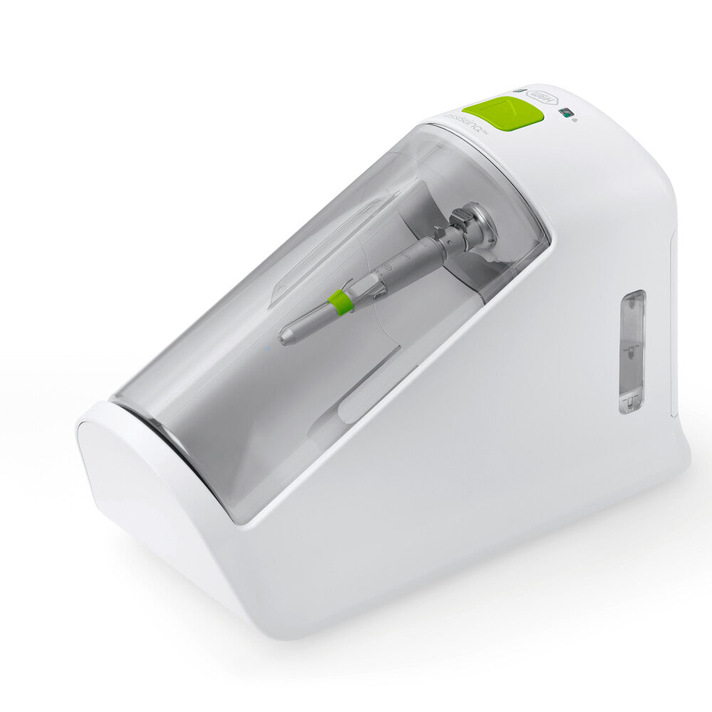 - Marknadens kortaste cykeltid: Hela processen för smörjning och rengöring av spraykanaler tar endast 18 sekunder. Detta gör det möjligt att snabbt cirkulera instrument mellan patienter utan väntetider.